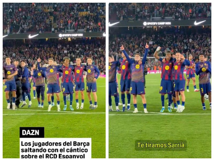 此外,比赛驱散后,看台上的球迷还唱起了那首针对西班经纪东说念主队的玷污性歌曲。令东说念主不测的是,多名巴萨主力球员不仅莫得规避,反而加入了这场“狂欢”。