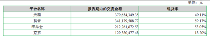 除此除外,线上渠说念则堕入“高退货率、低盈利”逆境,天猫、抖音渠说念退货率分离达49%、59%,试验净销售大幅低于交往活水,2025年线上销售收入同比下滑7.36%至10.63亿元。