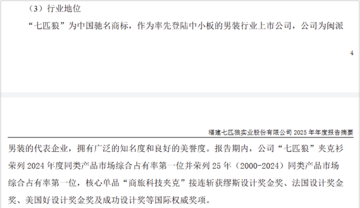 把柄中国服装协会、国度统计局《2025年纺织服装行业运转情况》,中国男装行业已进入低速诊治期,消耗需求承压、行业鸠集度偏低、竞争形势高度散布,而七匹狼在行业升级与竞争加重的双重配景下,不仅未能妥贴商所在位,反而面对商场份额捏续萎缩的逆境,重迭自己中枢竞争力弱化,糊口空间被进一步挤压。