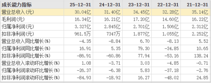 在热烈的行业竞争中,七匹狼的商所在位捏续下滑,尽管公司自称夹克品类连络25年市占率第一,但这一数据无法从外部孤独考据,而全体男装商场份额的流失已成为既定事实。2021年至2025年,公司营收从35.14亿元捏续萎缩至30.04亿元,5年累计下滑约14.5%,管束层将其归因于消耗环境承压,但实质上是公司在居品改进、品牌运营、渠说念布局等方面的竞争力不足,难以应付行业变化。