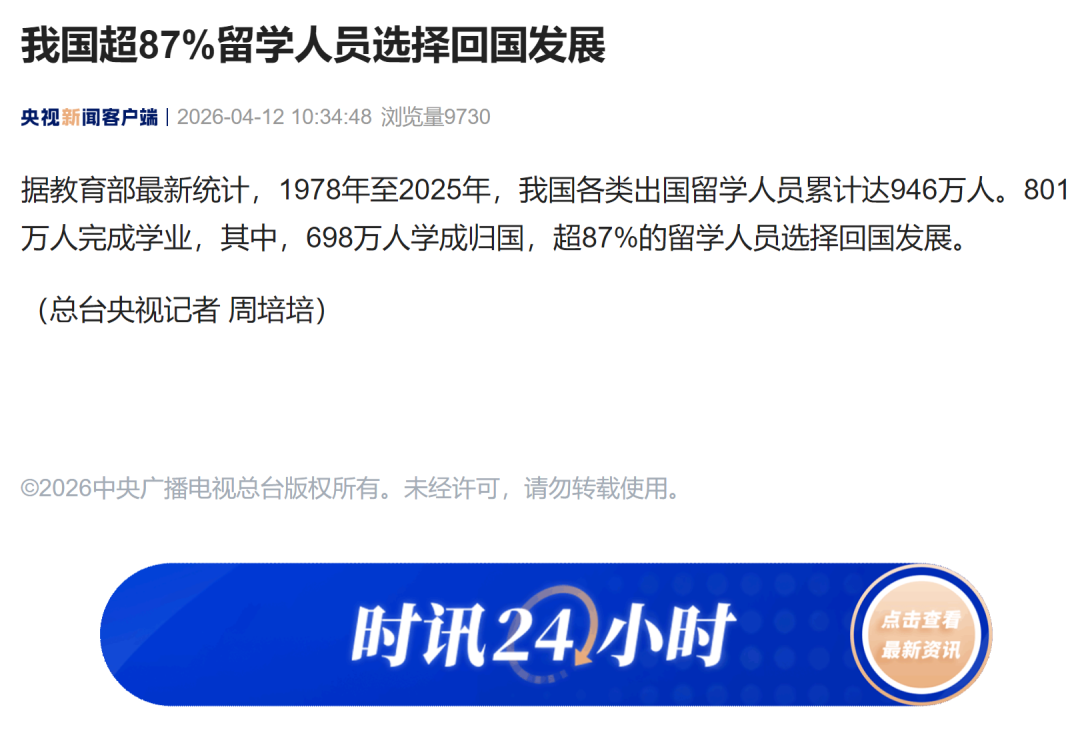 据教唆部最新统计,1978年至2025年,我国万般放洋留学东谈主员累计达946万东谈主。801万东谈主完成学业,雅博体育app下载中国官网入口其中,开云698万东谈主学成归国,超87%的留学东谈主员接受归国发展。