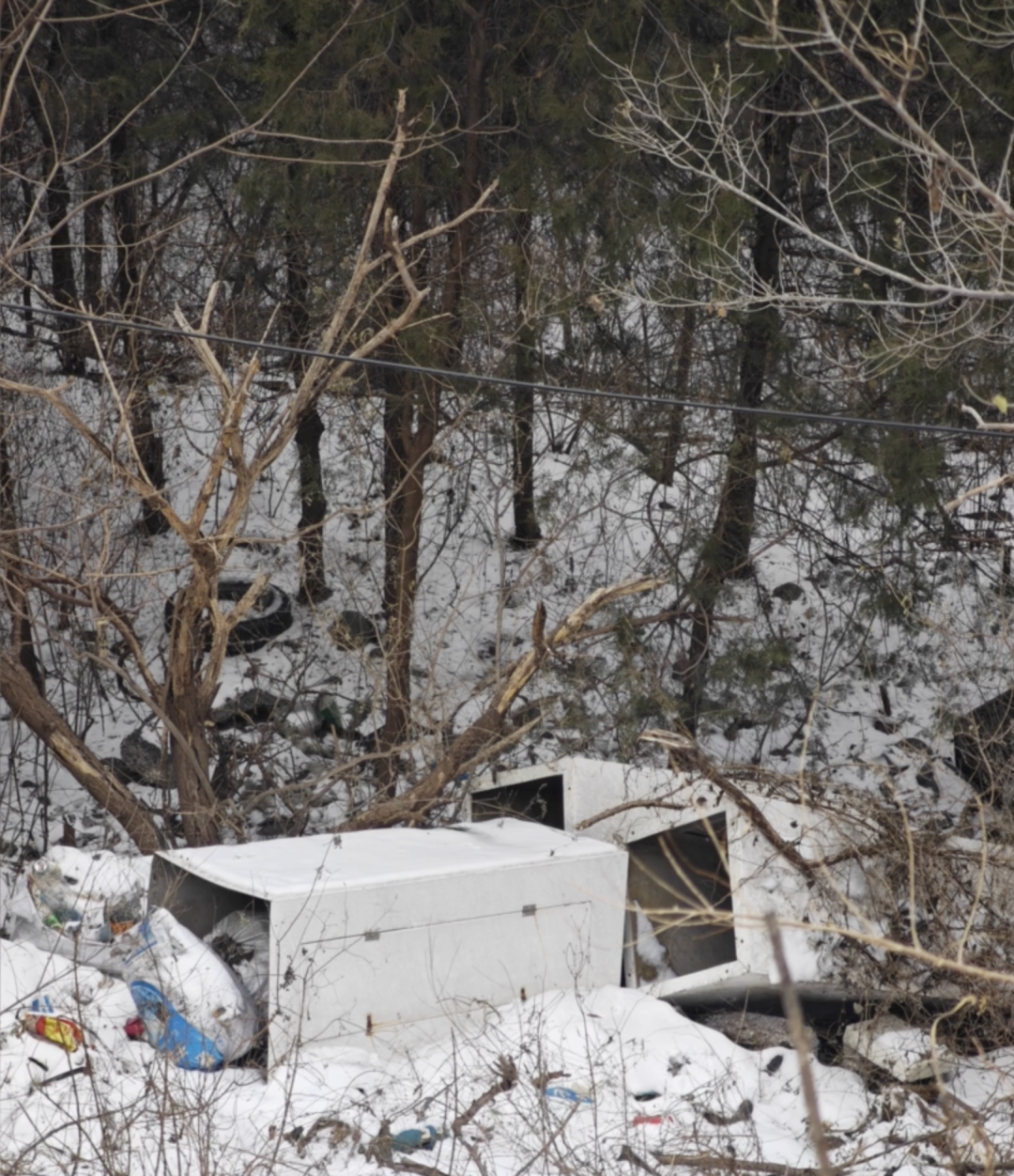 戒台寺周边的大灰厂路从山林间穿过,是连通山区与城区的交通要道,来往车辆频繁。然而大灰厂路沿途的山林里,每隔一段距离,就能看到成堆的垃圾。这些垃圾里相当一部分是生活垃圾,把一个个黑色大塑料袋或者尼龙袋塞得满满当当。此外,废旧的大件家具、锥桶、木板等也被倾倒于此。