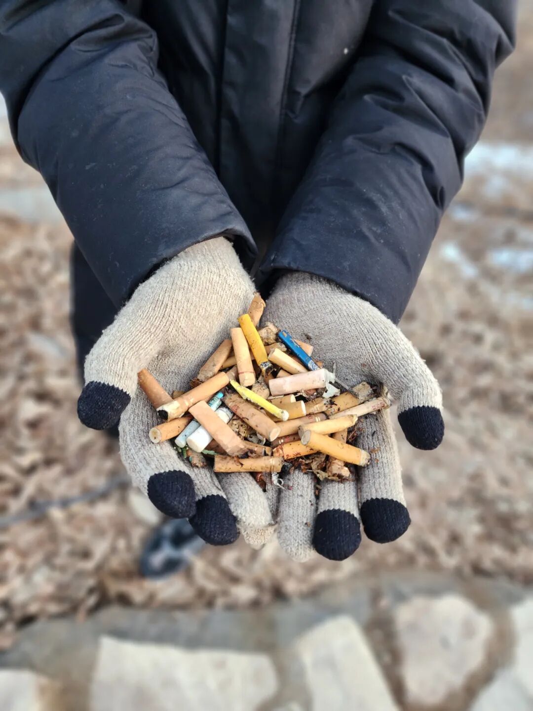 调查发现,管理方的防火提醒可谓相当周密。山林出入口、步道沿线,间隔不远便有醒目提示;重要路口设有智能广播,感应到有人经过,便会自动播放防火警示。但即便如此,山林内吸烟现象仍未杜绝。无论是在平坦的防火道旁,还是崎岖小径边,记者总能看见混杂在枯枝落叶中的烟头,且多为新近丢弃。记者仅步行两三公里,在视线范围内便捡到十几个烟头。“万一烟头带火星,落在枯叶堆里,引发火灾后果不堪设想。”一位徒步爱好者看到记者捡拾烟头的举动后,既表示赞许,也表达了担忧。