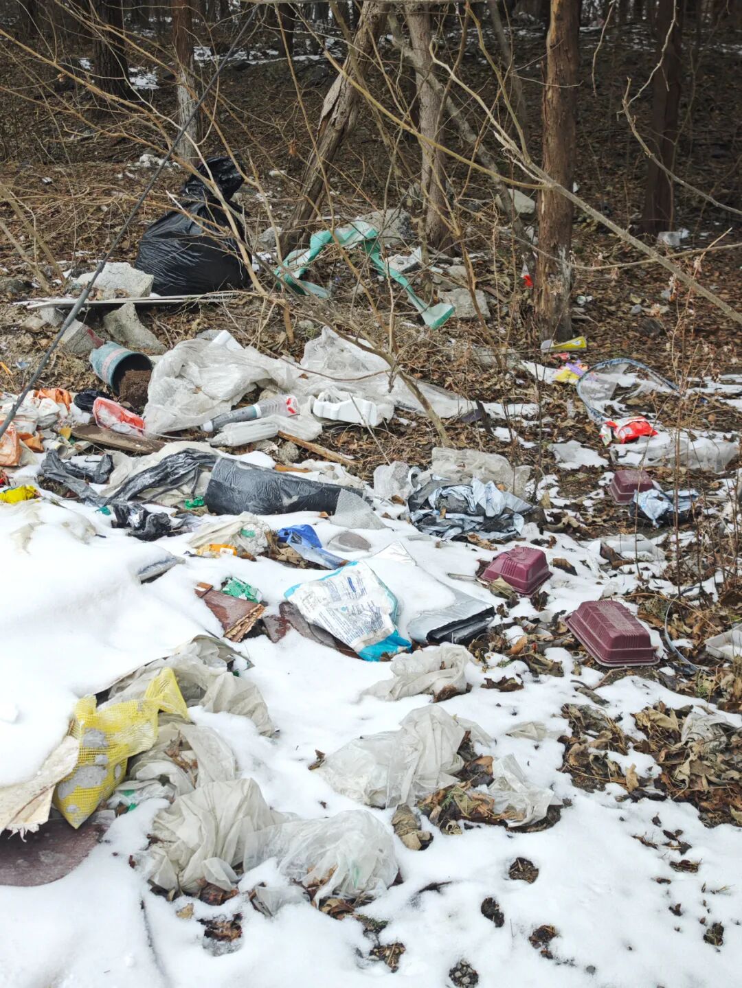 此前的探访中记者多次发现,每条户外徒步路线的沿途几乎都散落着一些垃圾。由于这些山林不是景区,没有设置垃圾桶,也没有人定期打扫,徒步者随手丢弃的垃圾很难得到及时清理。不过,徒步者丢弃的垃圾相对零散,而在戒台寺周边的部分山林里,生活垃圾、建筑垃圾成片堆积,显然是被人故意倾倒于此,属于偷倒行为。
