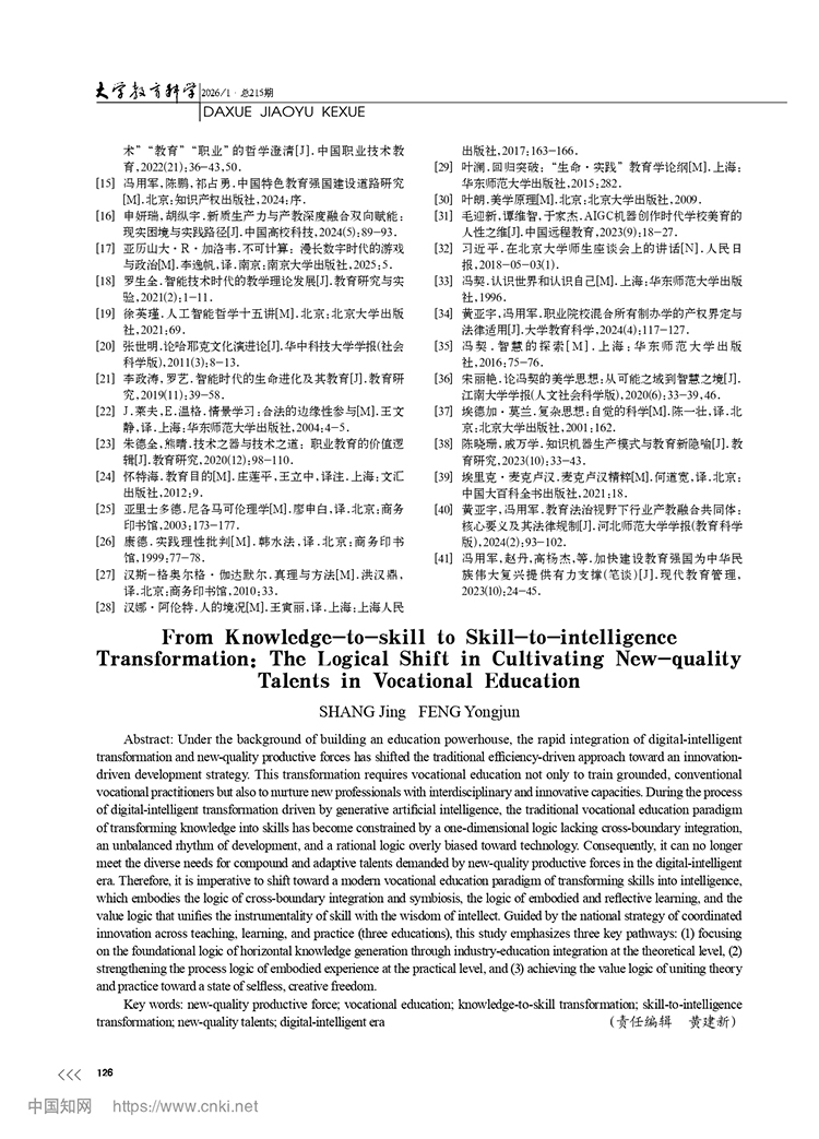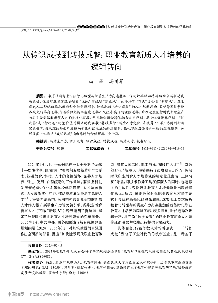 开云 尚晶 冯用军|从转识成技到转技成智:做事解说新质东说念主才培养的逻辑转向