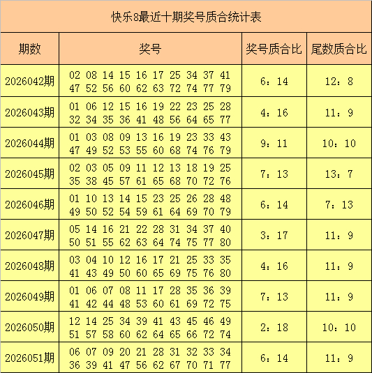 第八位:上期开出合数奖号32,奖号余数2为质数余数,最近20期该位质数余数奖号和合数余数奖号差别开出10次,走势平衡,最近10期第八位奖号余数质合比为6:4,当今质尾号码鸠合开出4期,本期醒目质尾号码再出,参考号码42。