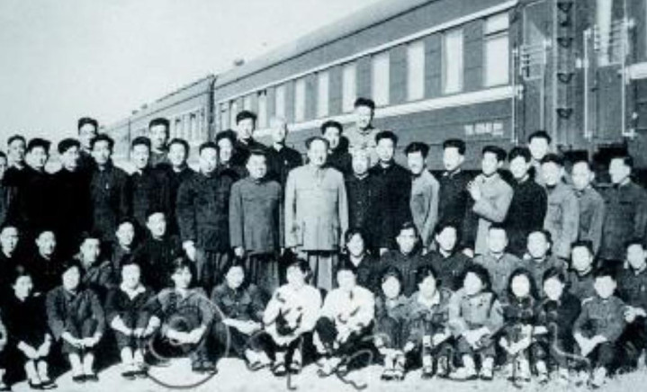 毛主席和专列就业主谈主员合照